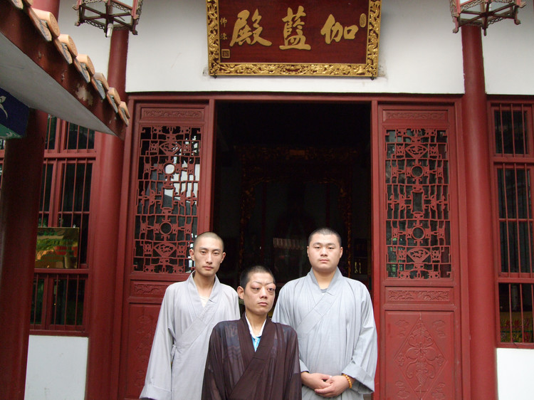 09年佛欢喜日前夕,云门佛学院界定法师一行在湖南益阳白鹿寺参加水陆法会,遇见照片中的这位居士(居中者),并拍下了这张照片。据居士自己回忆说,他曾在饭店中打工,杀死了大量的青蛙和蛇,所以现在眼睛变得像青蛙的眼睛一样。